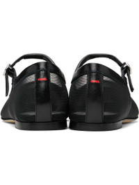 Semi-sheer mesh and buffed nappa leather Mary-Jane-style ballerina flats in black. · Square cap toe · Pin-buckle strap at vamp · Red stitch at heel collar · Stacked leather heel with rubber injection · Suede sole Supplier color: Black nappa/Mesh Upper: textile, leather, lambskin. Sole: leather, rubber. Made in Italy 251454F118040