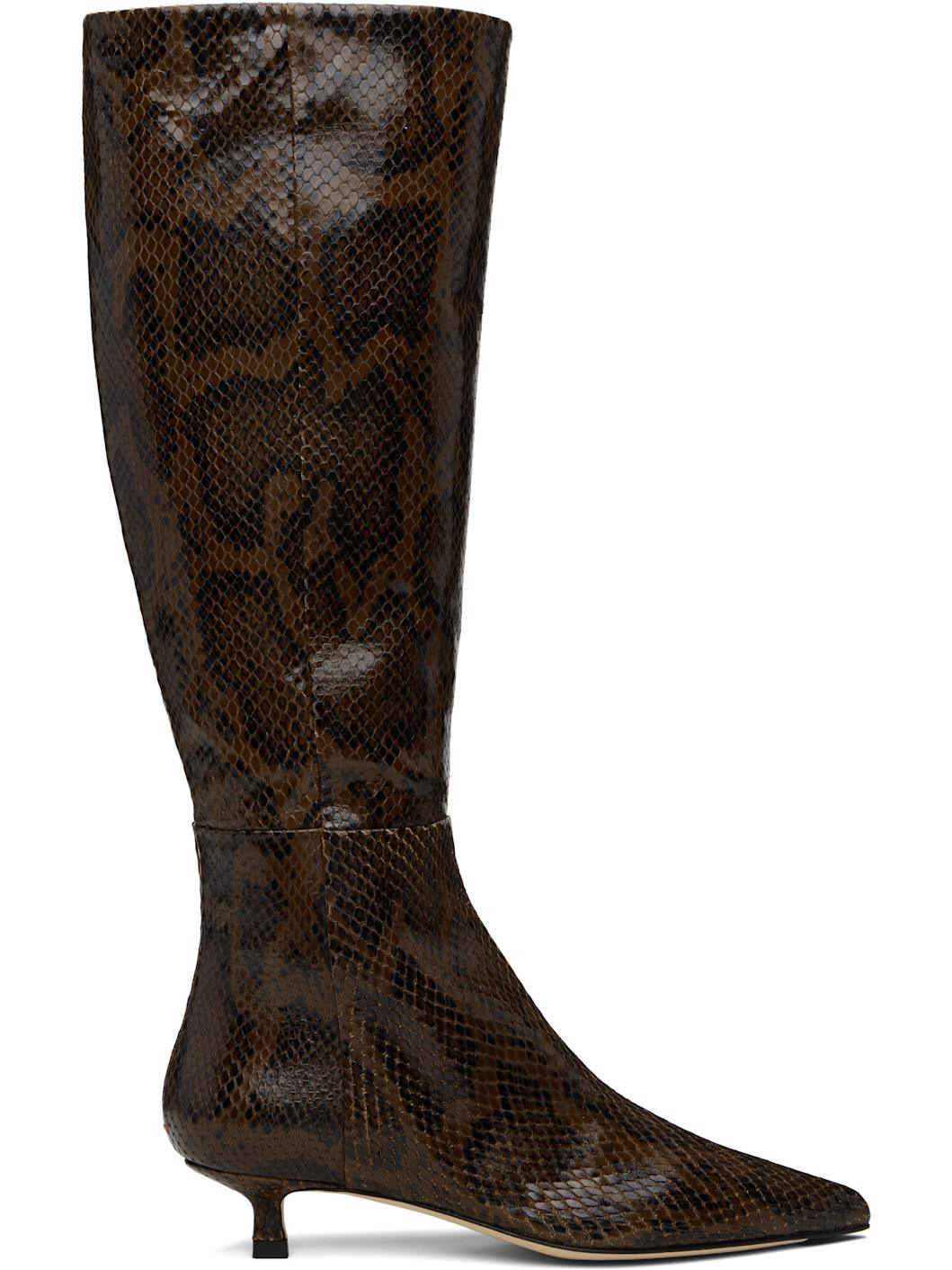 Sabrina Snake-Effect Leather Knee Boots brown