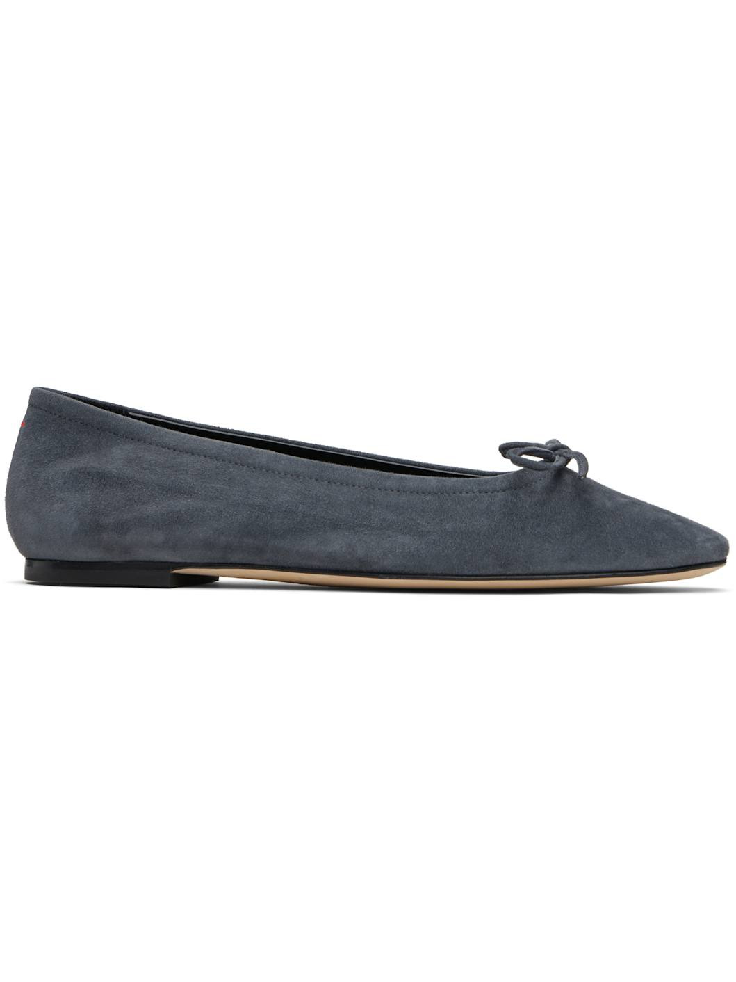 Kidskin suede ballerina flats. · Square toe · Bow accent at vamp · Red stitch at heel tab · Lambskin lining · Nubuck sole with rubber injection Supplier color: Charcoal suede Upper: kidskin. Sole: leather, rubber. Made in Italy 252454F118012
