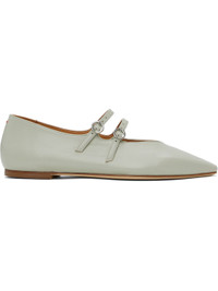 Grained nappa leather ballerina flats in gray. · Pointed toe · Pin-buckle straps at vamp · Red stitch at heel collar · Logo embossed at padded lambskin footbed · Stacked leather heel with rubber injection · Nubuck sole Supplier color: Cloud Upper: leather. Sole: leather, rubber. Made in Italy 251454F118039