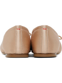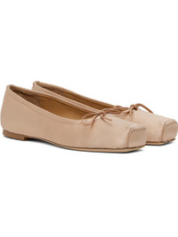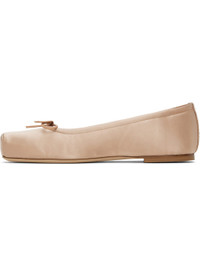 Satin ballerina flats in pink. · Square toe · Bow accent at vamp · Red stitch at heel collar · Logo embossed at padded lambskin footbed · Grained lambskin and lambskin suede lining · Stacked leather heel with rubber injection · Nubuck sole Supplier color: Peach Upper: textile. Sole: leather. Made in Italy 251454F118027