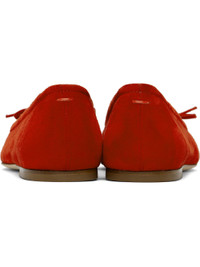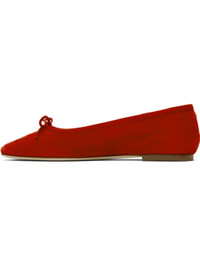 Goatskin suede ballerina flats in red. · Bow accent at vamp · Red stitch at heel collar · Logo embossed at padded lambskin footbed · Stacked leather heel with rubber injection · Nubuck sole Supplier color: Red Upper: goatskin. Sole: leather. Made in Italy 251454F118017