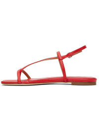 Buffed nappa leather sandals in red. · Open square toe · Thong-style strap at vamp · Pin-buckle slingback strap · Suede sole with rubber injection Supplier color: Red nappa Upper: leather, goatskin. Sole: leather, rubber. Made in Italy 251454F124015