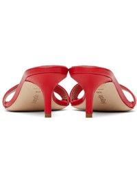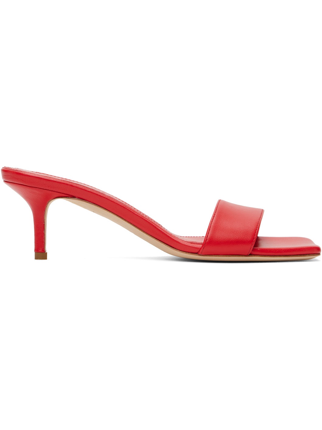 Buffed nappa leather mules in red. · Open square toe · Strap at vamp · Covered kitten heel with rubber injection · Suede sole · Heel: H2.5" Supplier color: Red nappa Upper: leather, lambskin. Sole: leather, rubber. Made in Italy 251454F125025