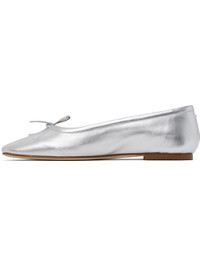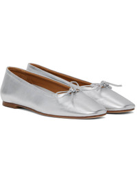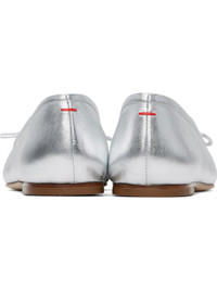 Laminated grained nappa leather ballerina flats in metallic silver tone. · Bow accent at vamp · Red stitch at heel collar · Logo embossed at padded lambskin footbed · Stacked leather heel with rubber injection · Nubuck sole Supplier color: Silver Leather. Made in Italy 251454F118019