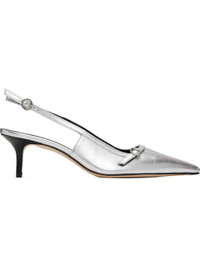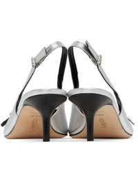 Handcrafted and LWG-certified nappa leather heels in silver tone. · Pointed toe · Pin-buckle tab at vamp · Pin-buckle slingback strap · Logo embossed at padded lambskin footbed · Grained lambskin lining · Stacked leather heel with rubber injection · Nubuck sole with rubber injection · Heel: H2" Supplier color: Silver nappa Upper: leather. Sole: leather, rubber. Made in Italy 251454F122007