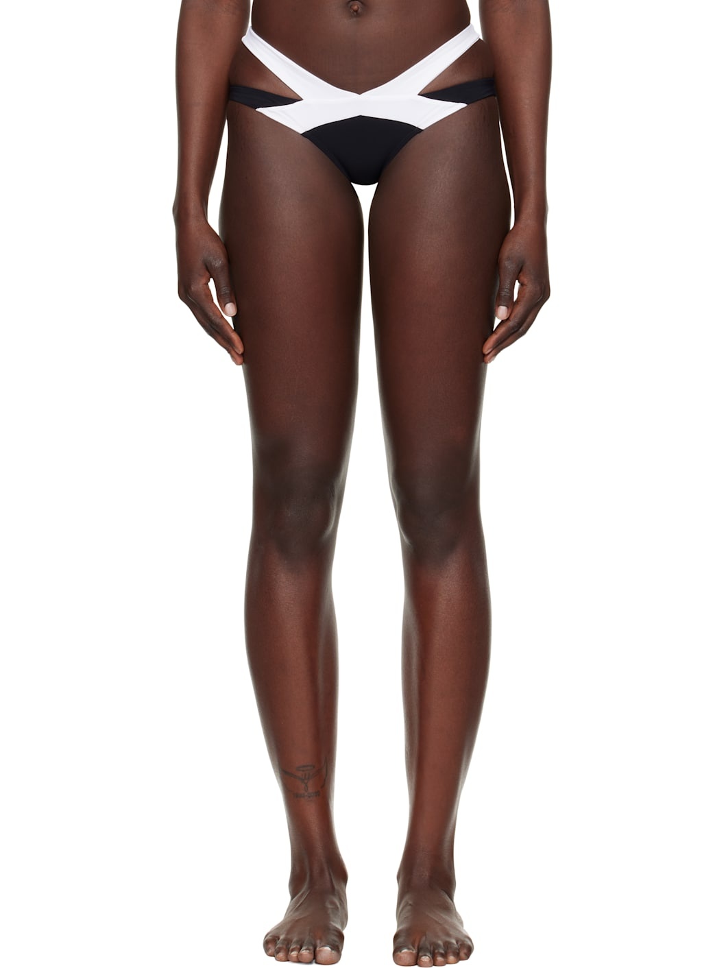 Stretch nylon jersey bikini bottom. · Cutouts at waistband · Full stretch jersey lining Supplier color: Black/White Body: 75% nylon, 25% elastane. Lining 1: 83% polyester, 17% elastane. Lining 2: 75% nylon, 25% elastane. Made in Tunisia 251281F105007