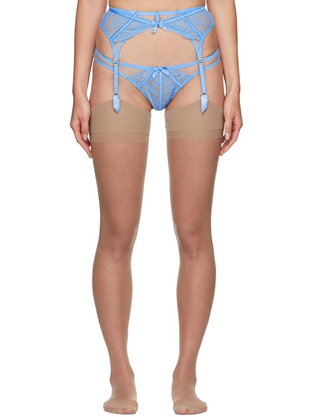Sheer nylon tulle garter belt. · Elasticized waistband · Adjustable garter straps at hem · Adjustable hook-eye fastening at back waistband Supplier color: Blue Body: 100% polyamide. Trim: 100% polyamide. Made in Morocco 221281F368009