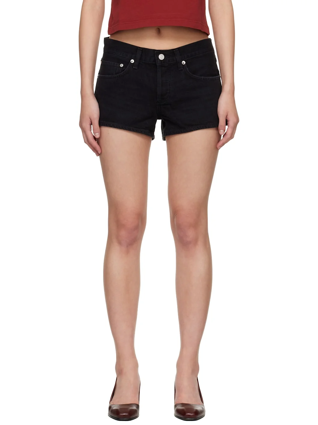 Non-stretch regenerative cotton denim shorts. · Subtle fading throughout · Low-rise · Belt loops · Five-pocket styling · Button fly · Logo-engraved silver-tone hardware Supplier color: Phase 100% regenerative cotton. Made in Turkey 261214F088008