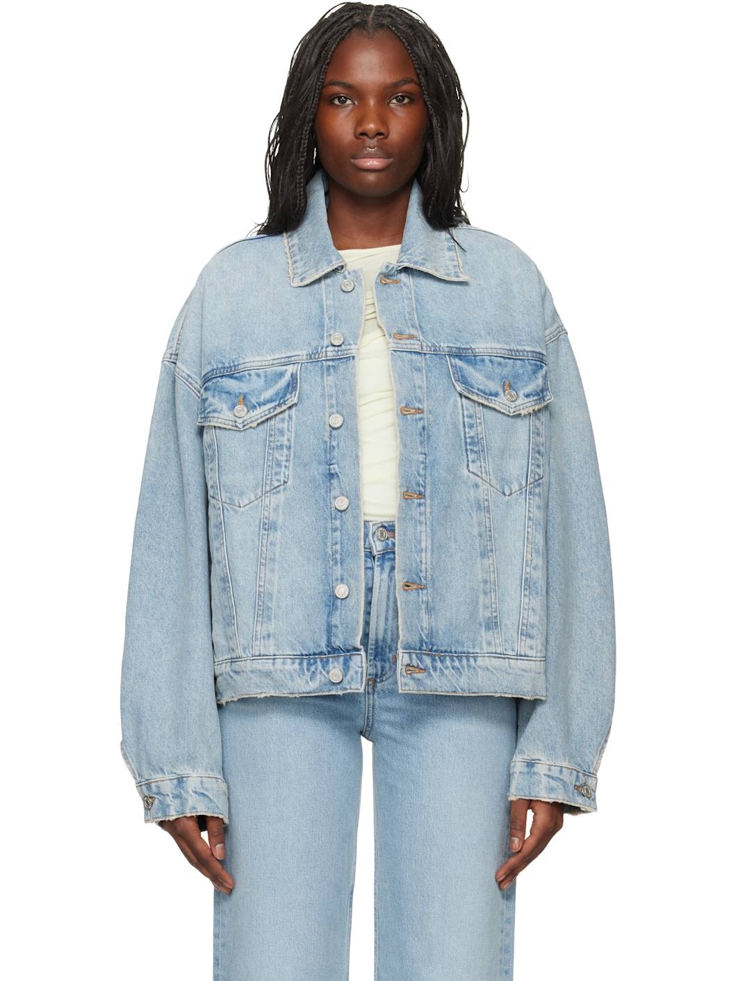Non-stretch organic cotton- and recycled cotton-blend denim jacket. Fading and subtle distressing throughout. · Lightweight · Spread collar · Button closure · Flap and welt pockets · Dropped shoulders · Balloon sleeves · Single-button barrel cuffs · Twin pleats at back hem · Adjustable button tabs at back hem · Logo-engraved silver-tone hardware · Contrast stitching in tan Supplier color: Soul