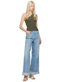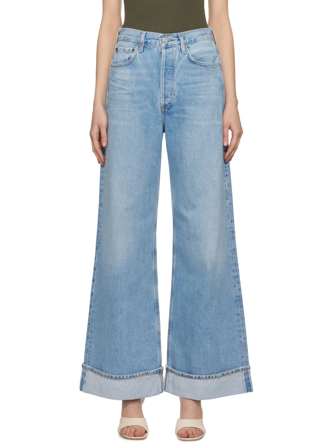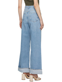 Relaxed-fit non-stretch regenerative cotton denim jeans. Fading, whiskering, and subtle distressing throughout. · High-rise · Belt loops · Five-pocket styling · Button-fly · Rolled cuffs · Contrasting stitching in gold tone Supplier color: Showdown 100% regenerative cotton. Made in Turkey 241214F069069
