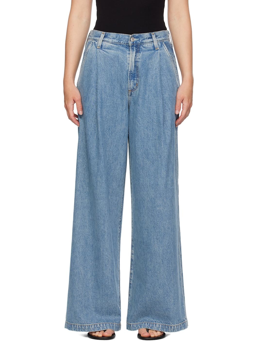Relaxed-fit wide-leg heavyweight non-stretch regenerative cotton denim jeans. Fading throughout. · Low-rise · Belt loops · Four-pocket styling · Pleats at front · Logo-engraved gunmetal-tone hardware Supplier color: Baffle 100% regenerative cotton. Made in United States 242214F069080