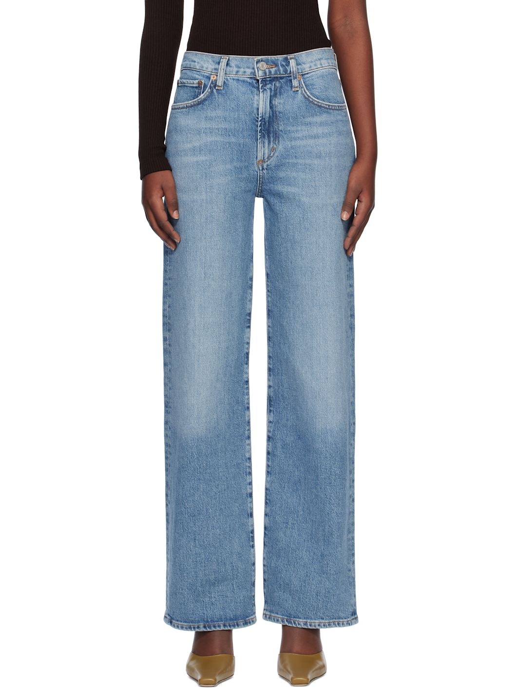 Relaxed-fit and wide-leg stretch post-consumer recycled cotton-blend denim jeans. Fading, whiskering, and subtle distressing throughout. · Mid-rise · Belt loops · Five-pocket styling · Zip-fly · Logo-engraved silver- and copper-tone hardware · Contrast stitching in tan Supplier color: Flash 88% cotton, 11% post-consumer recycled cotton, 1% elastane. Made in Turkey 251214F069003