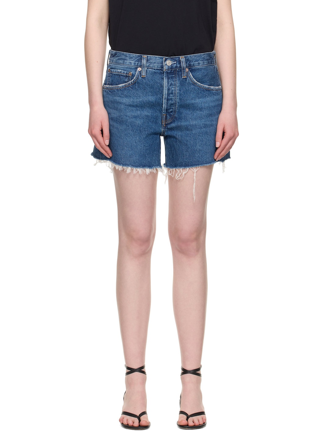 Non-stretch regenerative cotton denim shorts. Fading, whiskering, and subtle distressing throughout. · The Integrity Grown™-certified · Loose-fit · High-rise · Belt loops · Five-pocket styling · Button fly · Raw edge at hem · Logo-engraved silver- and bronze-tone hardware · Contrast stitching in tan Supplier color: Caution 100% regenerative cotton. Made in Turkey 252214F088013