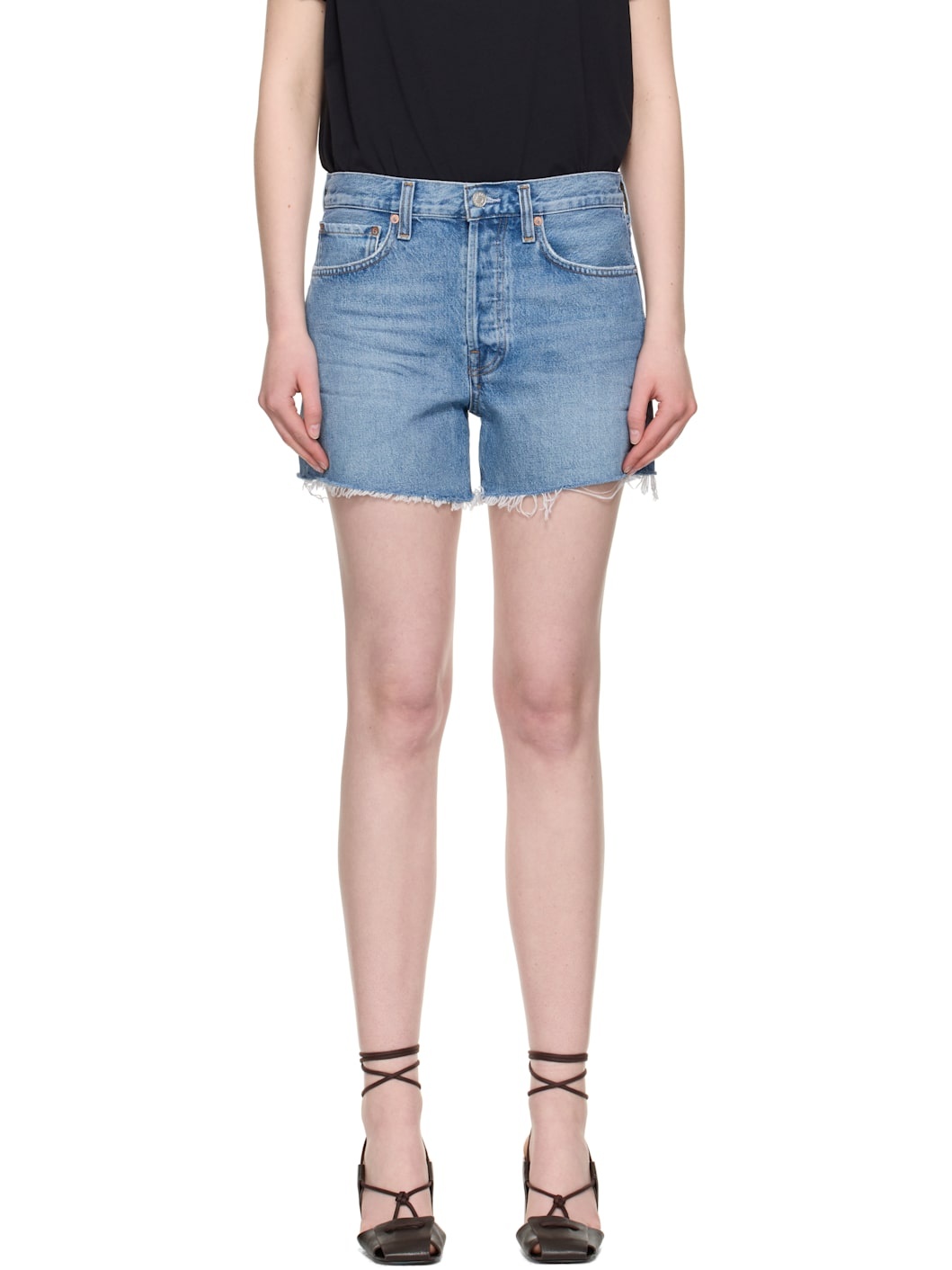 Non-stretch regenerative cotton- and lyocell-blend denim shorts. Fading, whiskering, and subtle distressing throughout. · The Integrity Grown™-certified · Loose-fit · High-rise · Belt loops · Five-pocket styling · Button fly · Raw edge at hem · Logo-engraved silver- and bronze-tone hardware · Contrast stitching in tan Supplier color: Fairway 67% regenerative cotton, 22% lyocell, 11% post-consumer recycled cotton. Made in Turkey 252214F088014