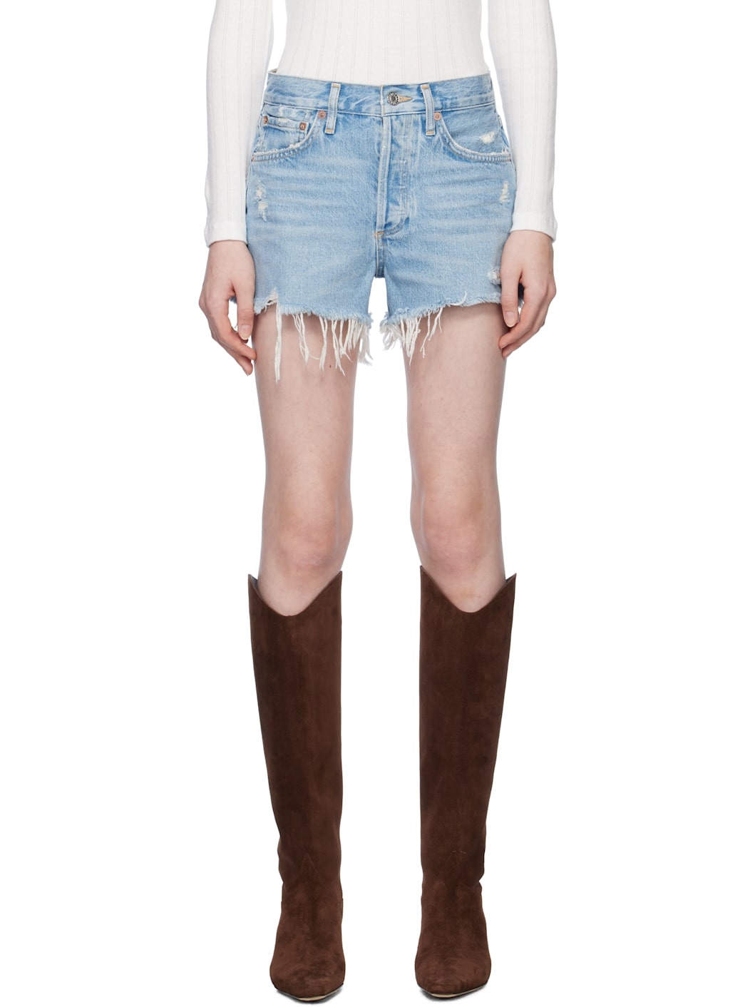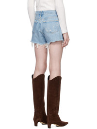 Loose-fit non-stretch regenerative cotton denim shorts. Fading, whiskering, and distressing throughout. · High-rise · Belt loops · Five-pocket styling · Button fly · Frayed edge at cuffs · Logo-engraved silver- and copper-tone hardware · Contrast stitching in tan Supplier color: Swapmeet 100% regenerative cotton. Made in Turkey 251214F088019