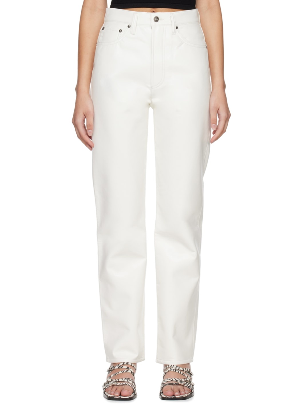 White 90's Pinch Waist Leather Pants