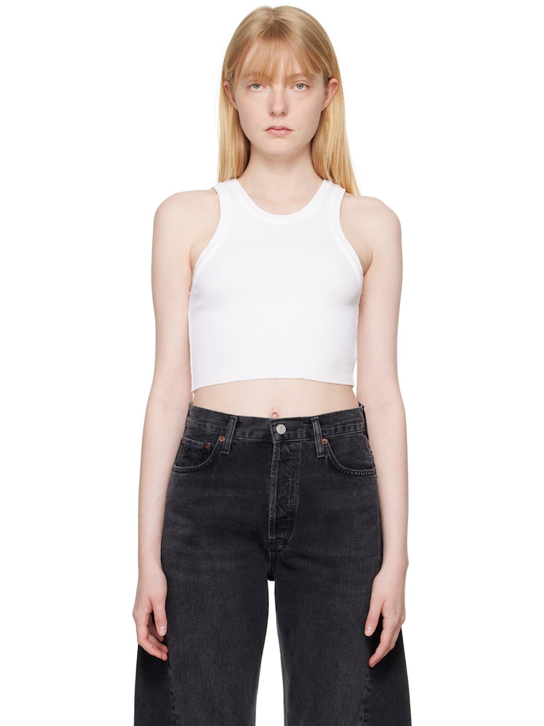 Stretch organic cotton-blend ribbed jersey tank top. · Rib knit scoop neck and armscyes · Raw edge at cropped hem Supplier color: White 49% organic cotton, 49% lyocell, 2% elastane. Made in United States 242214F111003