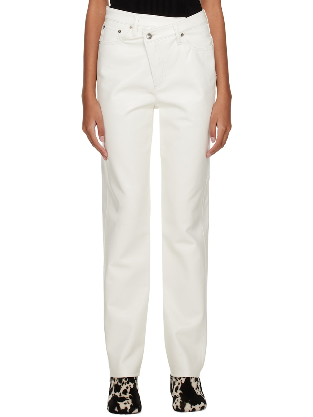 Grained recycled leather-blend pants. · Asymmetric construction · Belt loops · Five-pocket styling · Button-fly Supplier color: Lace 50% recycled leather, 30% polyurethane, 10% viscose, 10% polyester. Made in United States 222214F087001