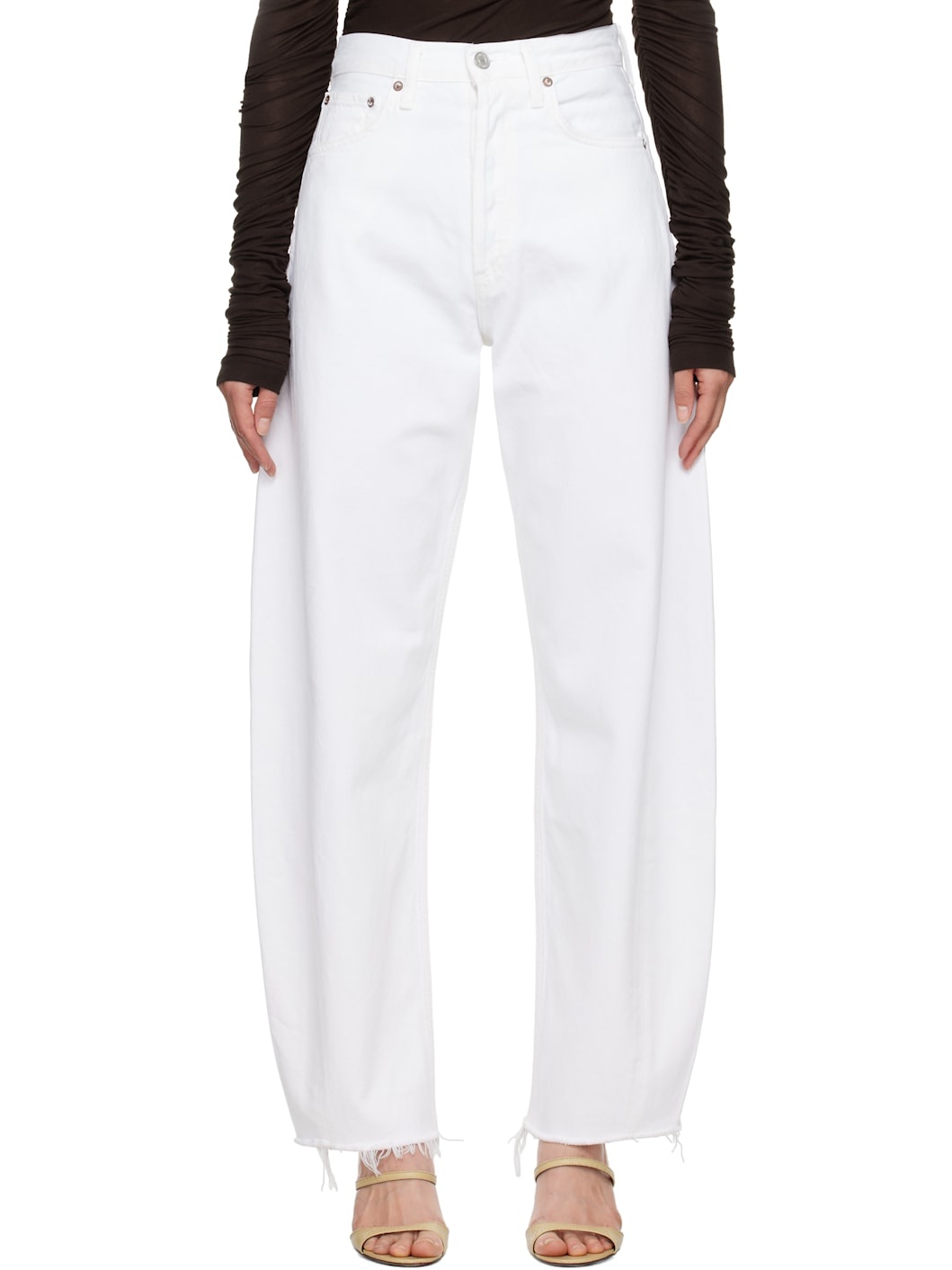 Relaxed-fit and tapered non-stretch regenerative cotton denim jeans. · High-rise · Belt loops · Five-pocket styling · Button-fly · Frayed edge at cuffs · Twisted outseams · Logo-engraved copper- and silver-tone hardware Supplier color: Element 100% regenerative cotton. Made in Turkey 251214F069045