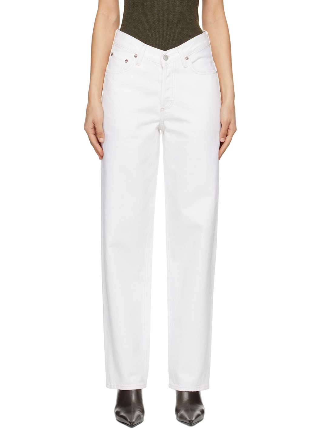 Non-stretch regenerative cotton denim jeans. Subtle distressing throughout. · Straight-leg · Belt loops · Five-pocket styling · Button-fly · Logo-engraved silver- and copper-tone hardware · Contrasting stitching in tan Supplier color: Milkshake 100% regenerative cotton. Made in Turkey 251214F069082