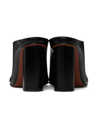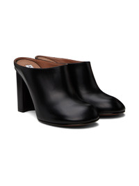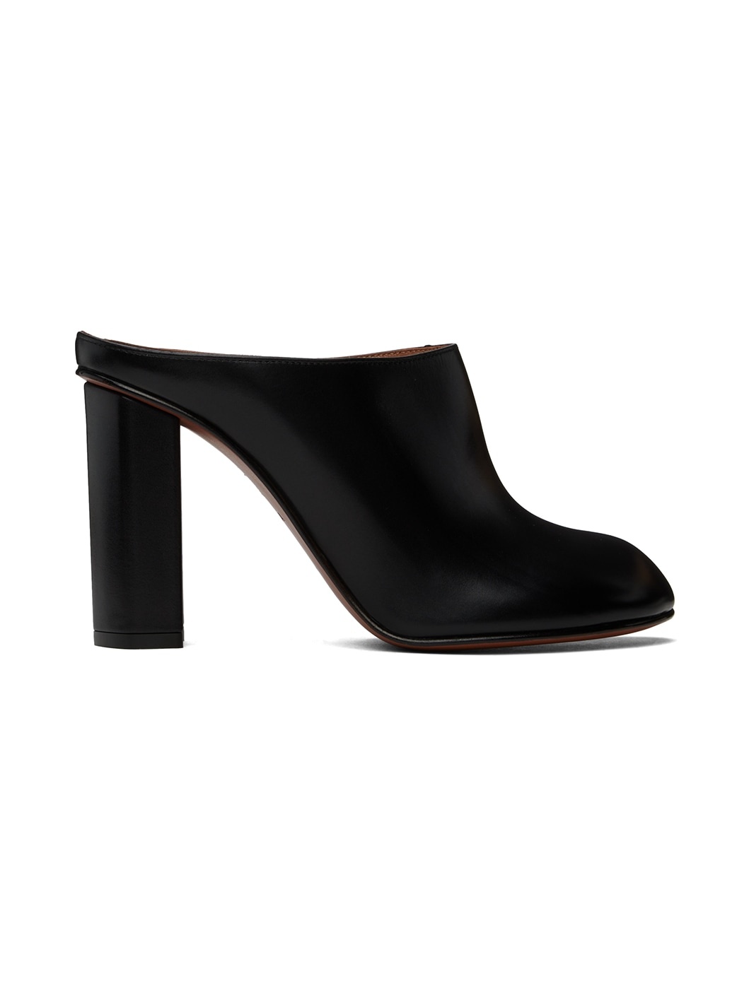 Buffed calfskin mules in black. · Logo patch at padded lambskin footbed · Grained lambskin lining · Covered block heel with rubber injection · Calfskin sole with rubber injection · Heel: H3.5" Supplier color: Noir Upper: calfskin. Sole: calfskin, rubber. Made in Italy 241483F122014