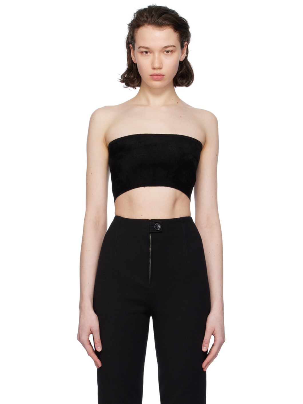 Stretch wool and viscose-blend velvet tube top. Rib knit trim at hem. Supplier color: Black 38% wool, 29% viscose, 25% polyamide, 6% polyester, 2% elastane. Made in Italy 231483F111016
