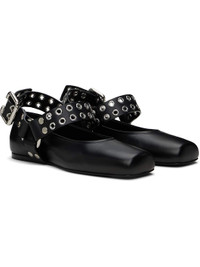Buffed calfskin ballerina flats in black. · Square toe · Eyelets and O-rings at pin-buckle ankle strap · Leather sole with rubber injection Supplier color: Black Upper: calfskin. Sole: leather, rubber. Made in Italy 251483F118012