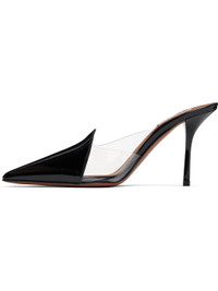 Transparent vinyl and patent calfskin mules in black. · Pointed toe · Lacquered stiletto heel with rubber injection · Leather sole with rubber injection · Heel: H3.5" Supplier color: Noir Upper: calfskin, vinyl. Sole: leather, rubber. Made in Italy 251483F122018