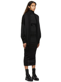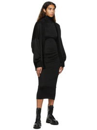 Paneled rib knit viscose jersey dress. Detachable cardigan-style overlay. · Turtleneck · Rib knit cuffs · Press-stud closure at back · Central vent at back hem Supplier color: Alaia black 100% viscose. Made in Italy 221483F054001