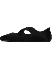 Viscose- and silk-blend satin ballerina flats in black. · Partially elasticized criss-crossing straps at vamp · Pin-buckle fastening · Logo patch at footbed · Buffed lambskin lining · Treaded rubber sole Supplier color: Noir Upper: 72% viscose, 28% silk. Sole: 100% rubber. Made in Italy 251483F118001