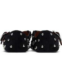 Calfskin suede ballerina flats in black. · Studs throughout · Partially elasticized criss-crossing straps at vamp · Pin-buckle fastening · Logo patch at padded footbed · Buffed lambskin lining · Treaded rubber sole Supplier color: Black Upper: calfskin. Sole: rubber. Made in Italy 251483F118002