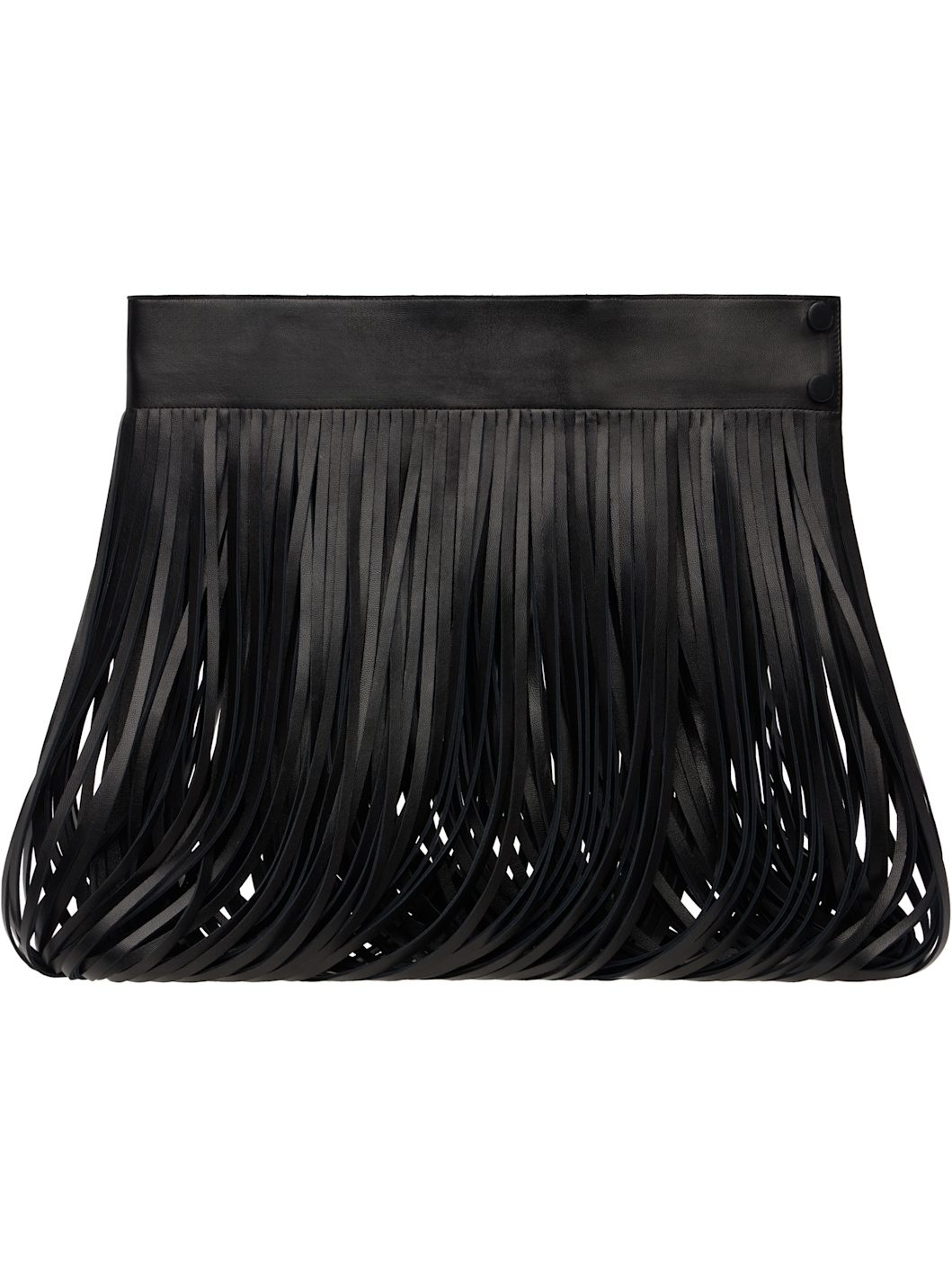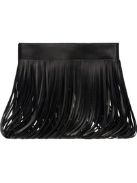 Buffed lambskin waist belt in black. · Looped fringes throughout · Press-stud and hook-eye closure at waistband · H13.5" Supplier color: Black Leather. Made in France 242483F001010