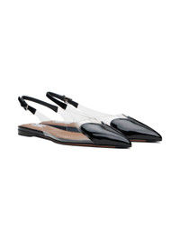 Transparent polyurethane ballerina flats. · Patent calfskin trim in black throughout · Graphic applique at pointed toe · Pin-buckle slingback strap · Logo patch at lambskin footbed · Calfskin sole with rubber injection Supplier color: Noir Upper: polyurethane, calfskin. Sole: calfskin, rubber. Made in Italy 242483F118020