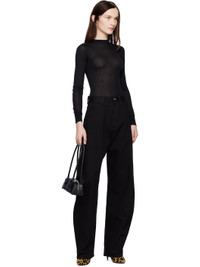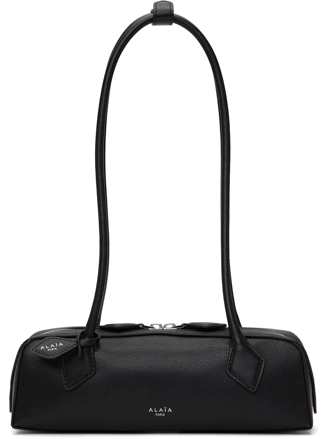 Grained goatskin shoulder bag in black. · Press-stud tab at rolled shoulder straps · Detachable logo tag · Logo stamp at face · Two-way zip closure · Card slot and detachable mirror at interior · Suede lining · H3.5" x W10.5" x D3.25" Supplier color: Noir Goatskin. Made in Italy 251483F048008
