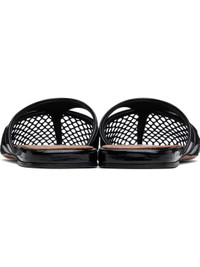 Mesh and patent leather mules in black. · Thong-style strap at vamp · Cutout at sides · Leather sole with rubber injection Supplier color: Noir Upper: textile, leather. Sole: leather, rubber. Made in Italy 251483F121001