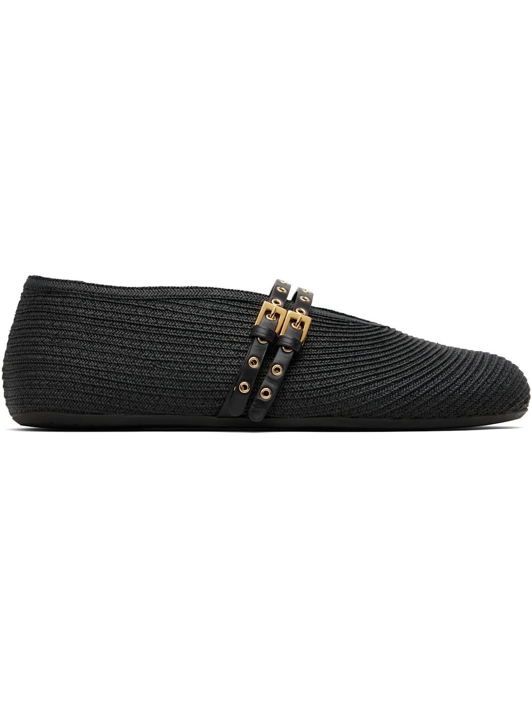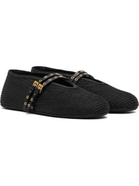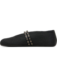 Woven paper straw ballerina flats. · Calfskin pin-buckle straps at vamp · Lambskin lining · Pattern at rubber sole Supplier color: Noir Upper: paper straw. Sole: rubber. Made in Italy 252483F118013