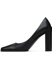 Buffed calfskin heels. · Square toe · Buffed leather lining · Covered block heel with rubber injection · Leather sole with rubber injection · Heel: H4" Supplier color: Noir Upper: calfskin. Sole: leather, rubber. Made in Italy 252483F122017