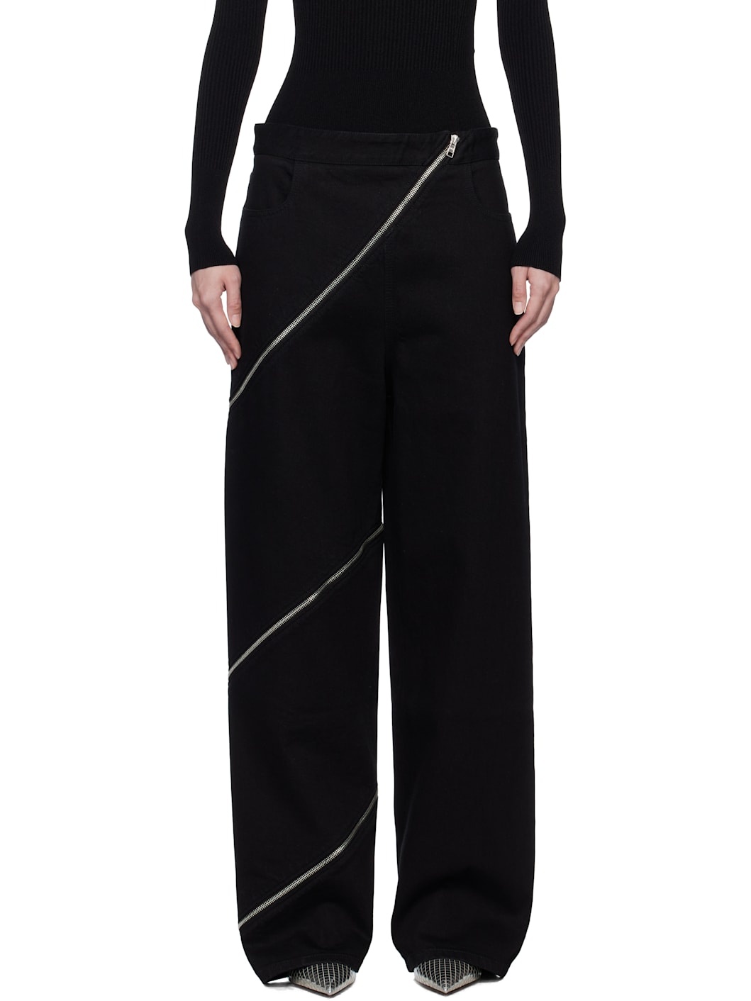 Stretch denim jeans. Wraparound two-way zip closure extends to cuff. · Straight-leg · Four-pocket styling Supplier color: Noir Body: 99% cotton, 1% polyurethane. Lining: 65% polyester, 35% cotton. Made in Italy 251483F069004