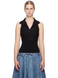 Stretch viscose- and nylon-blend pique bodysuit. · Rib knit open spread collar · V-neck · Press-stud closure at bottom Supplier color: Noir alaia 69% viscose, 29% nylon, 2% elastane. Made in Italy 242483F358002
