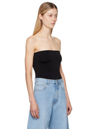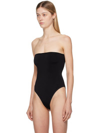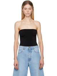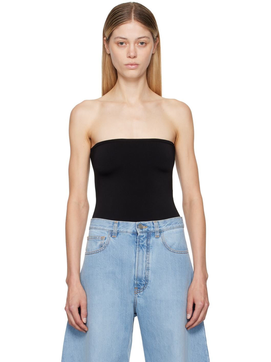 Rib knit stretch viscose- and nylon-blend bodysuit. · Straight neck · Press-stud closure at bottom Supplier color: Noir alaia Body: 82% viscose, 17% polyamide, 1% polyurethane. Trim: 85% viscose, 14% polyamide, 1% polyurethane. Made in Italy 242483F358007