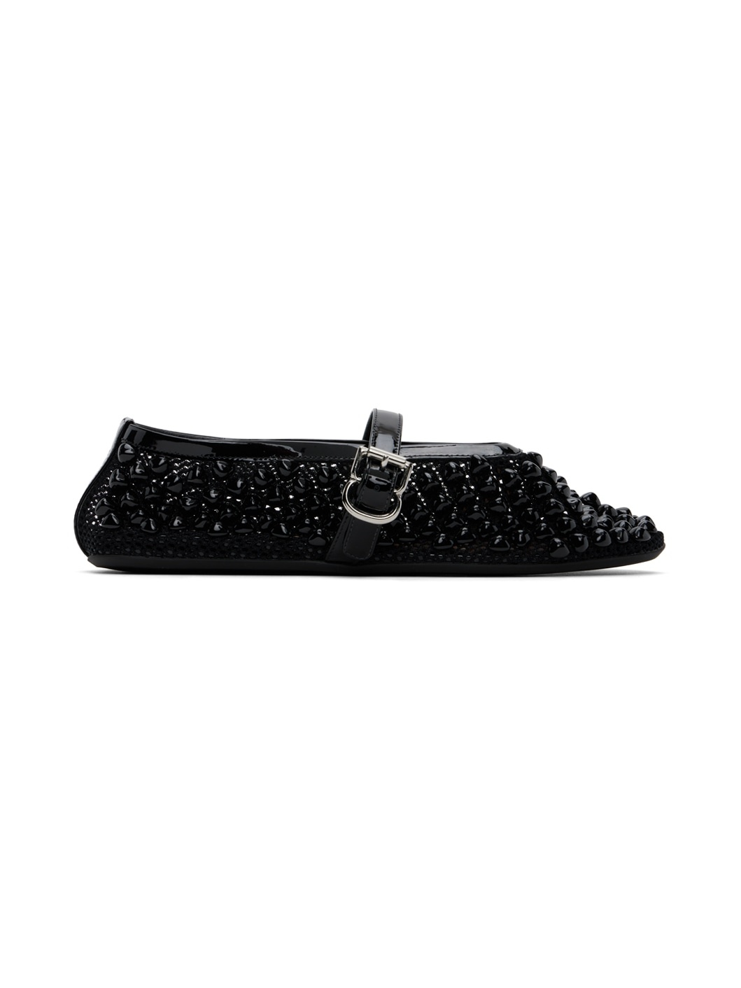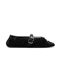 Nylon fishnet ballerina flats in black. · Pyramid studs and patent calfskin trim throughout · Pin-buckle strap at vamp · Logo patch at padded lambskin footbed · Treaded rubber sole Supplier color: Noir Upper: nylon, calfskin. Sole: rubber. Made in Italy 242483F118004