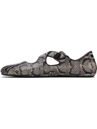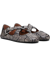 Snake-embossed leather ballerina flats. · Partially elasticized crisscrossing straps at vamp · Pin-buckle fastening · Buffed leather lining · Rubber sole Supplier color: Blanc/Noir Upper: leather. Sole: rubber. Made in Italy 252483F118021