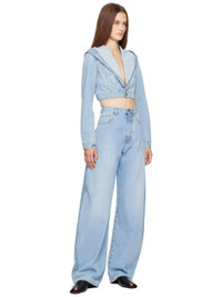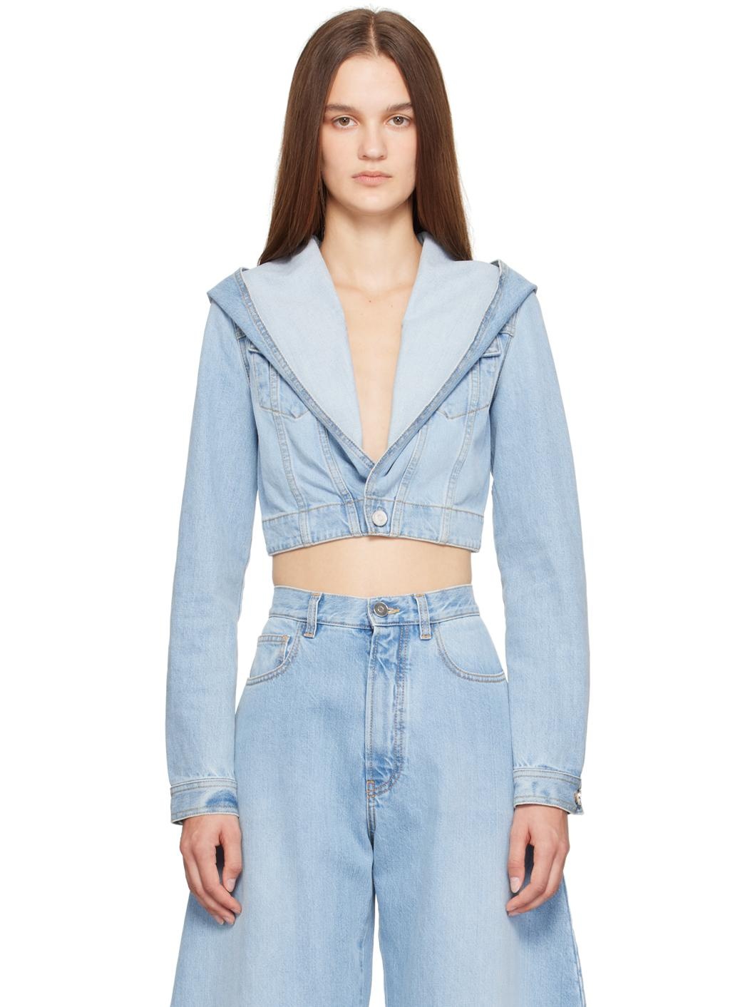 Blue Hooded Cropped Denim Jacket
