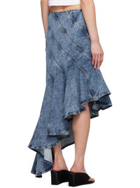 Stonewashed stretch denim midi skirt. Fading throughout. · Paneled construction · Low-rise · Asymmetric handkerchief hem · Zip closure at side · Contrast stitching in tan Supplier color: Blue 99% cotton, 1% polyurethane. Made in Italy 251483F092000