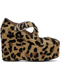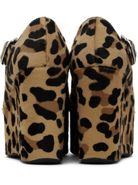 Calf-hair Mary Jane-style heels in brown. · Leopard pattern printed throughout · Criss-crossing straps at vamp · Pin-buckle fastening · Buffed leather lining · Covered wedge heel and platform midsole · Treaded rubber sole · Platform: H2.25" · Heel: H4" Supplier color: Brown Upper: calfskin. Sole: rubber. Made in Italy 251483F122001
