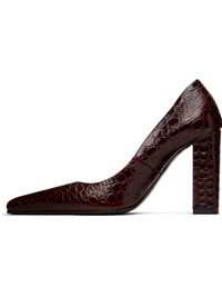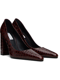 Croc-embossed calfskin heels. · Pointed toe · Buffed leather lining · Covered block heel with rubber injection · Leather sole with rubber injection · Heel: H3.5" Supplier color: Rouge grenat Upper: calfskin. Sole: leather. Made in Italy 252483F122015