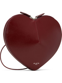 Heart-shaped structured buffed calfskin shoulder bag. · Adjustable crossbody strap · Silver-tone logo stamp at face · Logo charms at two-way zip closure · Buffed lambskin interior · H7.5" x W8.25" x D1" Supplier color: Garnet red Calfskin, lambskin. Made in Italy 252483F048000