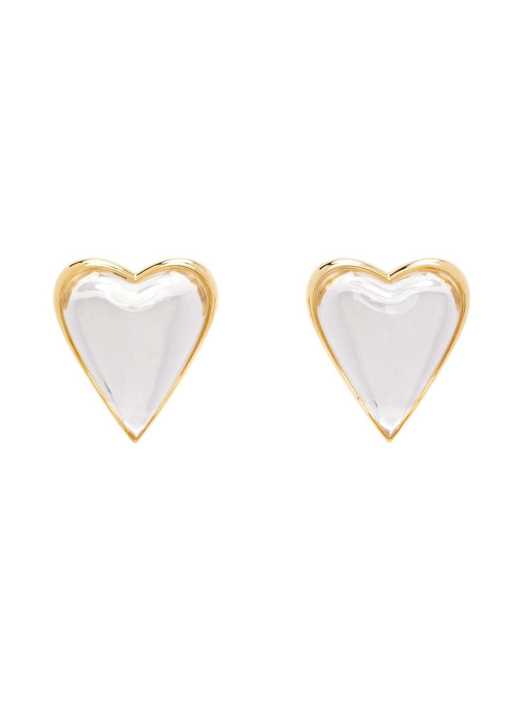 Pair of stud earrings in gold-tone brass. · Transparent resin graphic at face · Post-stud fastening · H1.75"x W1.75" Supplier color: Transparent Brass, resin. Made in Italy 242483F022012