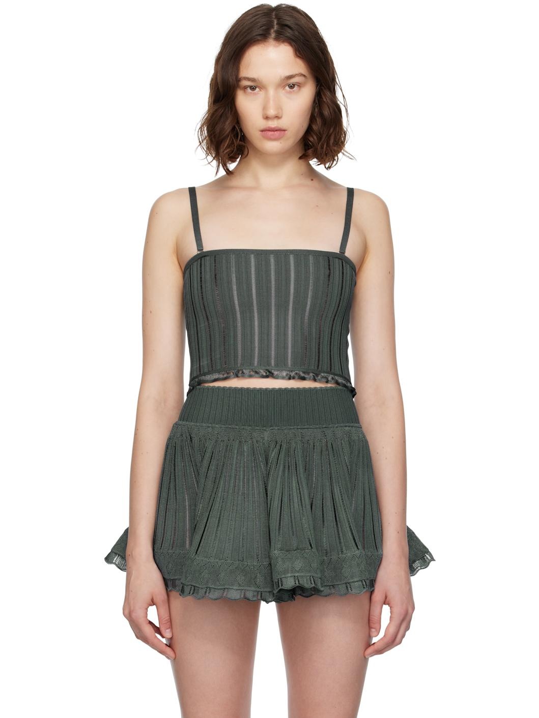 Rib-knit viscose tank top. · Straight neck · Scalloped edge at flared cropped hem · Adjustable and detachable spaghetti straps Supplier color: Lichen 100% viscose. Made in Italy 252483F111001
